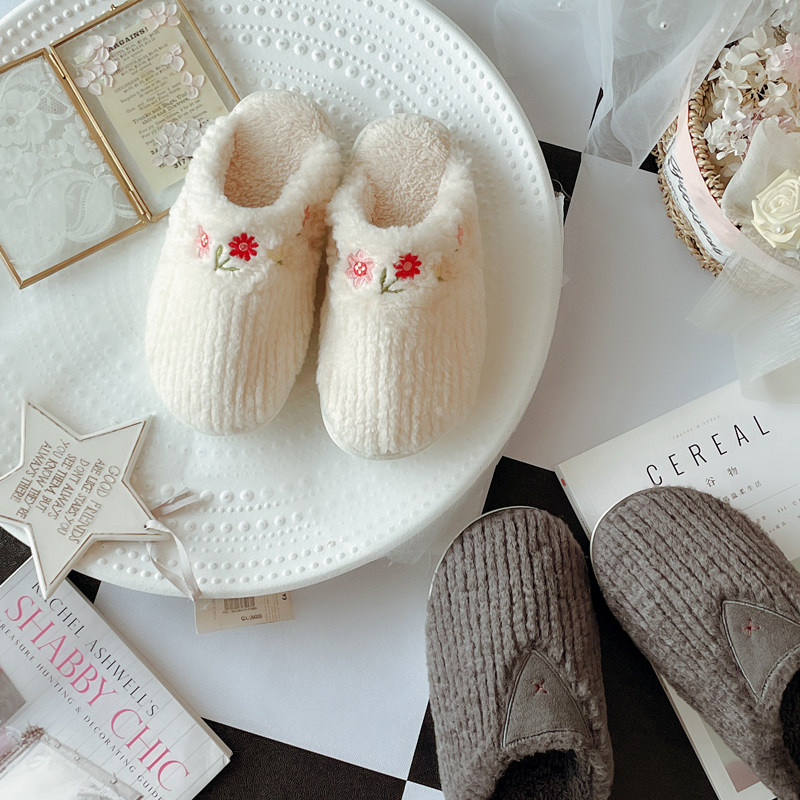 极速法式复古田园情侣家居棉拖鞋 秋冬季室内防滑U厚底保暖女士居