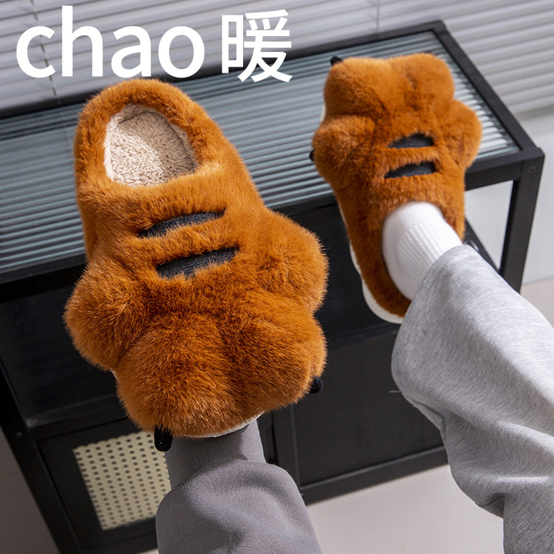虎爪子棉拖鞋男冬季外穿新款情侣室内家居厚底防滑T保暖棉鞋女冬