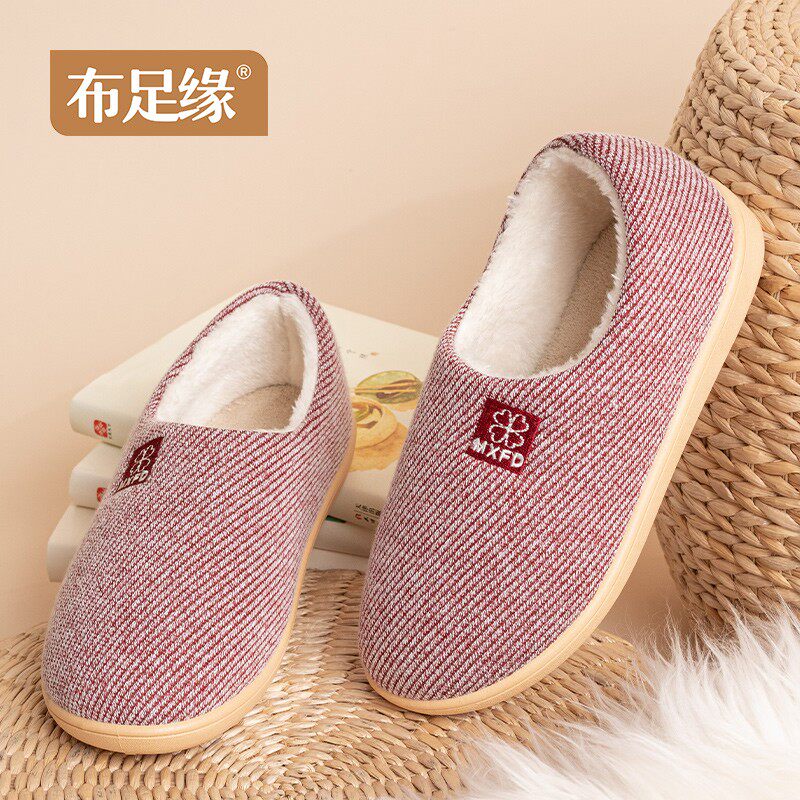 布足缘冬季女士棉拖鞋老r年人包跟厚底家居室内防滑月子带后跟外