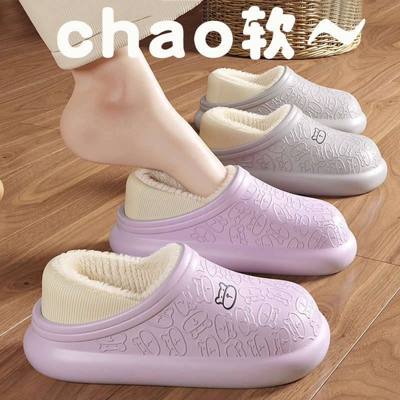 防水棉拖鞋女士冬季外穿2024新款室内家居包跟加S绒保暖防滑月子