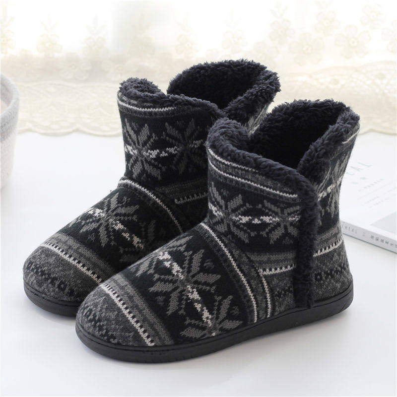 秋冬季棉拖鞋男女大码加绒保暖家居靴高帮室内厚底毛拖鞋包跟防滑