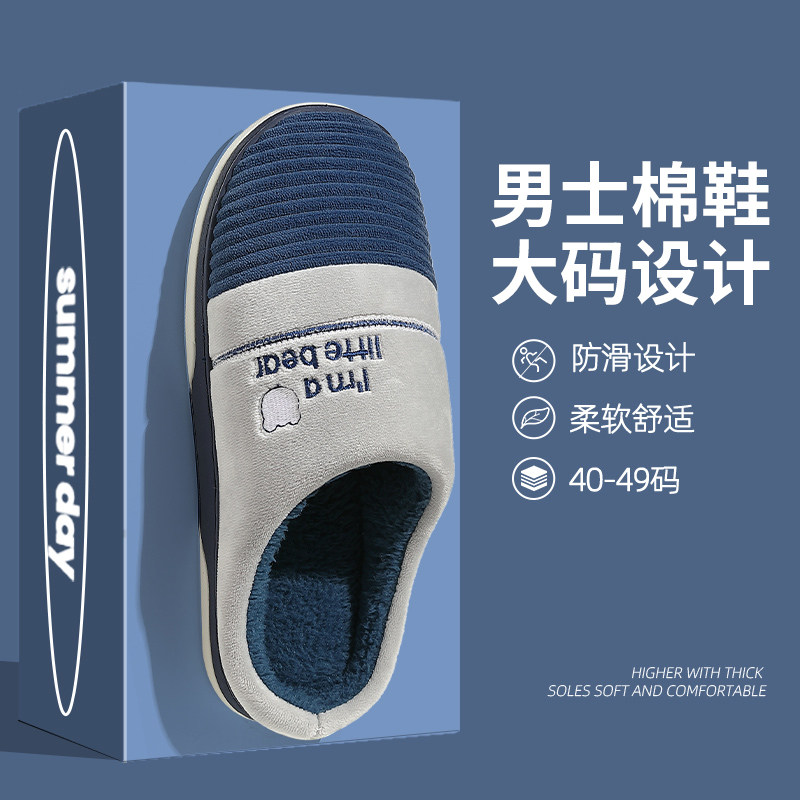 棉拖鞋踩屎感女冬秋季家鞋室内居家防滑厚底踩屎感毛绒保暖棉拖男