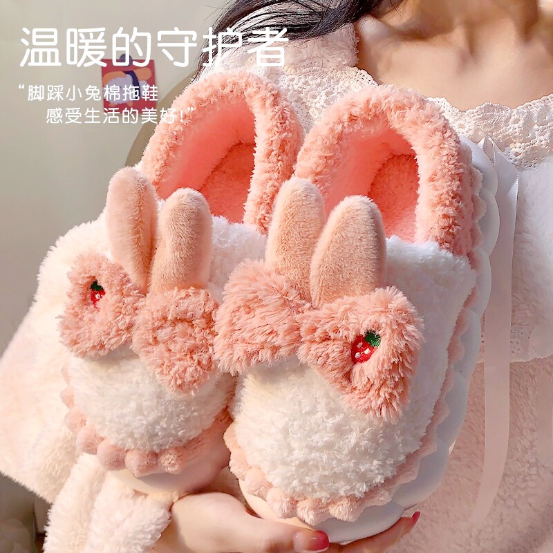 小暖熊棉拖鞋女秋冬季室内家居加绒加厚毛毛绒少女心情侣保暖拖鞋
