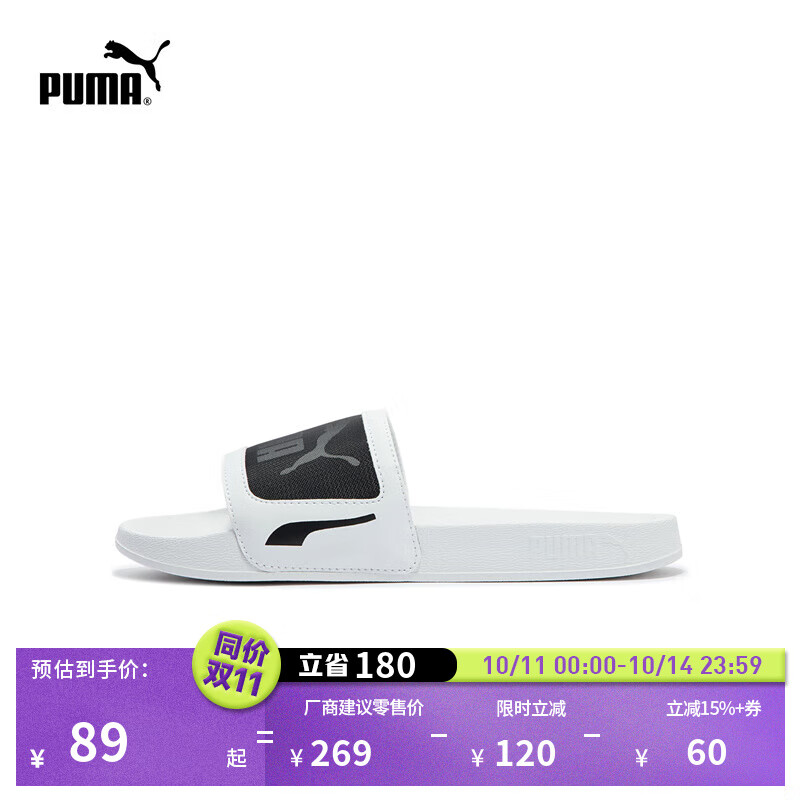 彪马(PUMA)轻便沙滩透气拖鞋男女情侣款夏季外穿室内休闲凉鞋375101 白-黑色-02 43