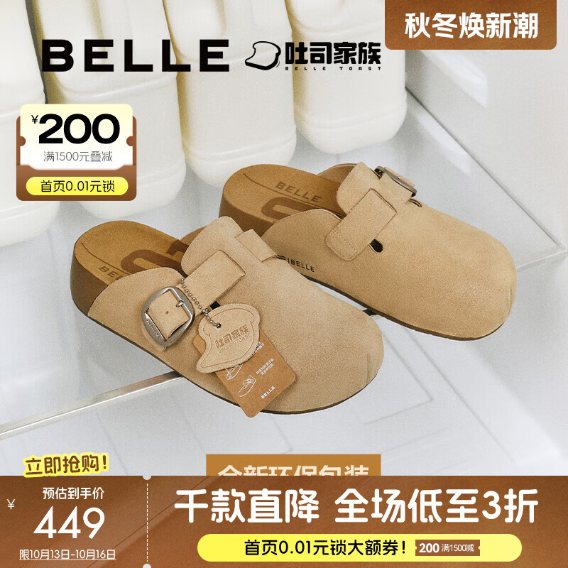 百丽(Belle)张凌赫同款厚岛吐司2代勃肯拖鞋女商场款可外穿拖鞋D8R1DBH5 杏色 37