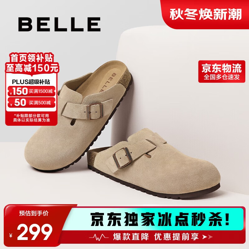 百丽休闲厚底增高勃肯鞋男包头外穿半拖鞋B3731BH5 杏色 40