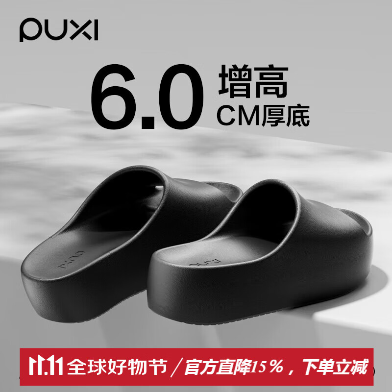朴西新款6.0cm增高eva踩屎感户外厚底凉拖鞋女夏家居室内外穿情侣拖鞋 黑色 36