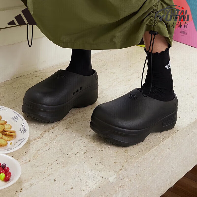 阿迪达斯 (adidas)三叶草拖鞋男鞋女鞋 25秋季新款运动鞋凉鞋穆勒鞋休闲鞋厨师鞋 IE4626/黑色 38