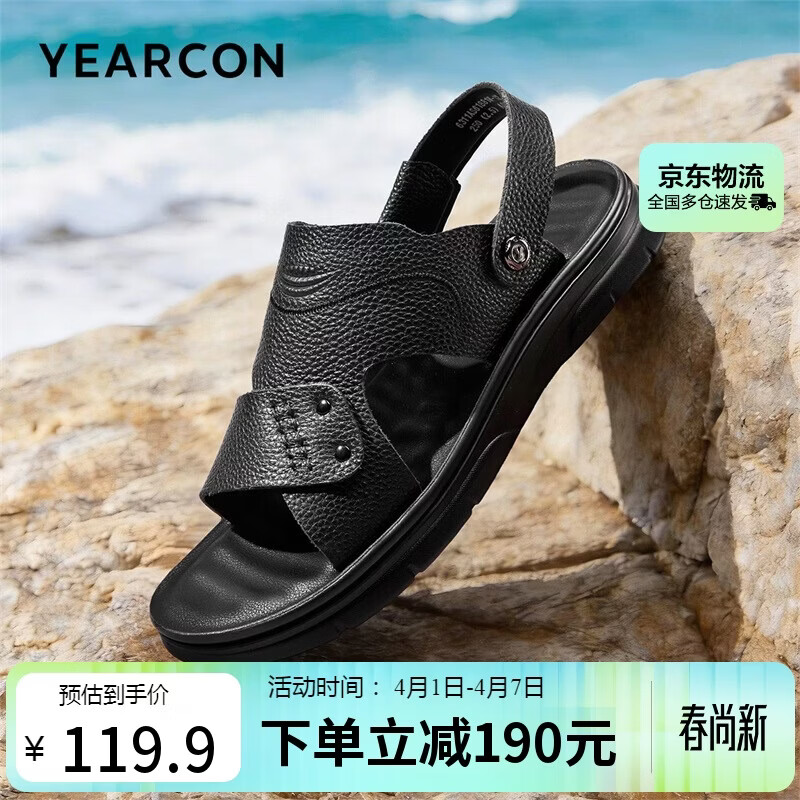 意尔康男鞋软底透气户外休闲拖鞋两用沙滩鞋男士凉鞋 61881W黑色 41