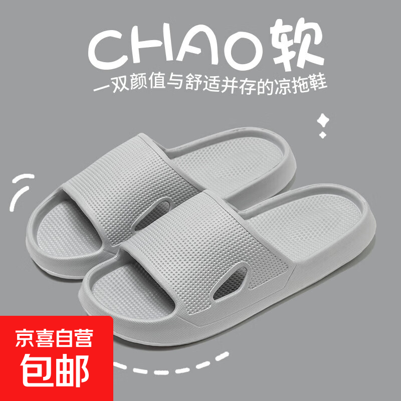 拖鞋女男沙滩鞋男居家外穿EVA拖鞋男凉拖男凉拖鞋男士软底一字拖 灰色 44-45