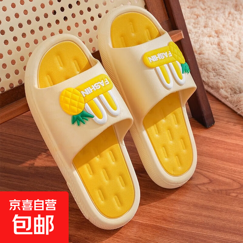 高颜值超软2026新款拖鞋女款防滑防臭家居软底居家一字拖鞋女 2340【夏日凤梨】黄色 38 -39 【偏小一码】