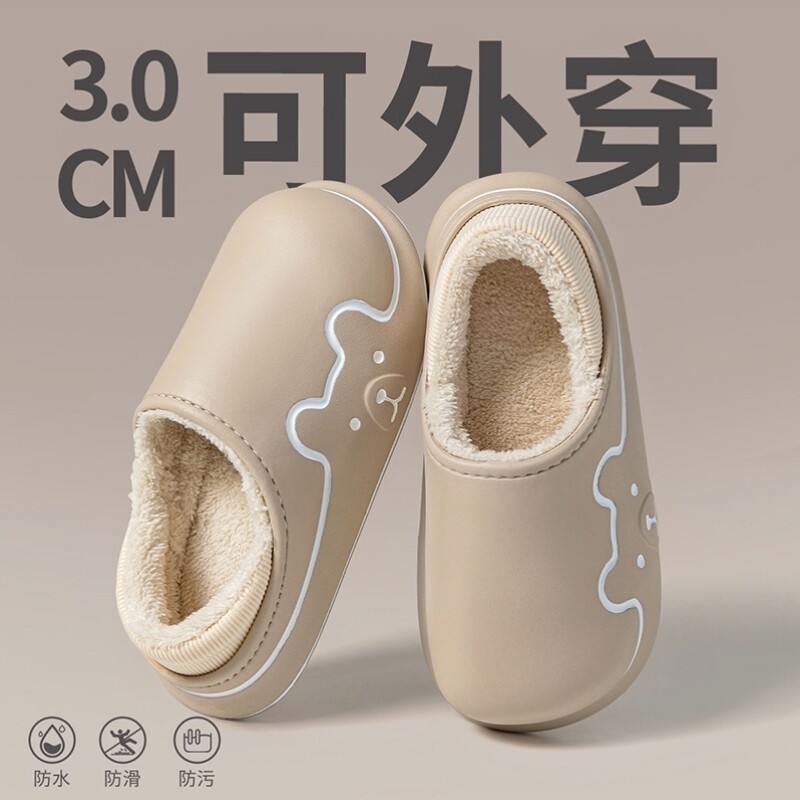 厚底防水棉拖鞋男士冬季外穿加绒加厚保暖家居包跟踩脚情侣棉鞋女
