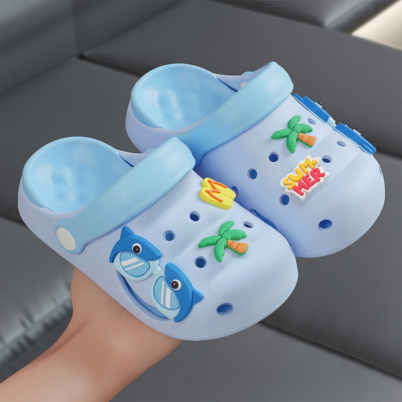 可爱鲨鱼儿童洞洞鞋女童2026新款夏季防滑厚底宝宝凉拖鞋女孩外穿
