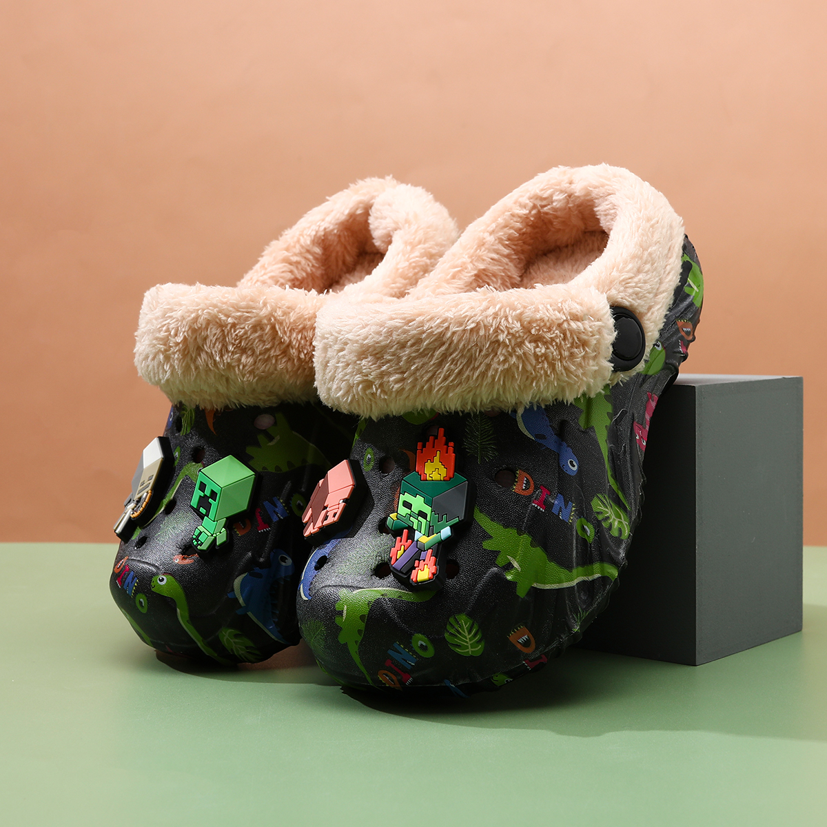 我的世界儿童棉拖鞋男孩毛毛鞋秋冬季新款宝宝中大童防滑保暖居家