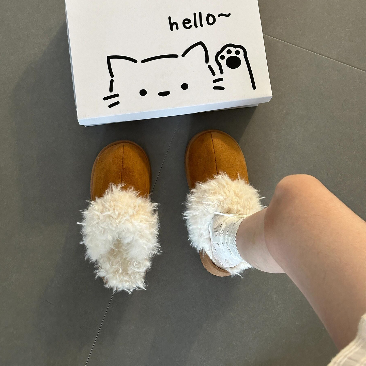厚底棉拖鞋女2026新款冬季包头拖复古外穿毛毛鞋百搭防滑雪地靴