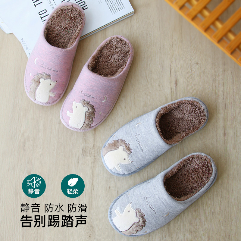 冬季静音b防滑保暖毛绒卡通情侣居家棉拖鞋室内男女家居家用地板