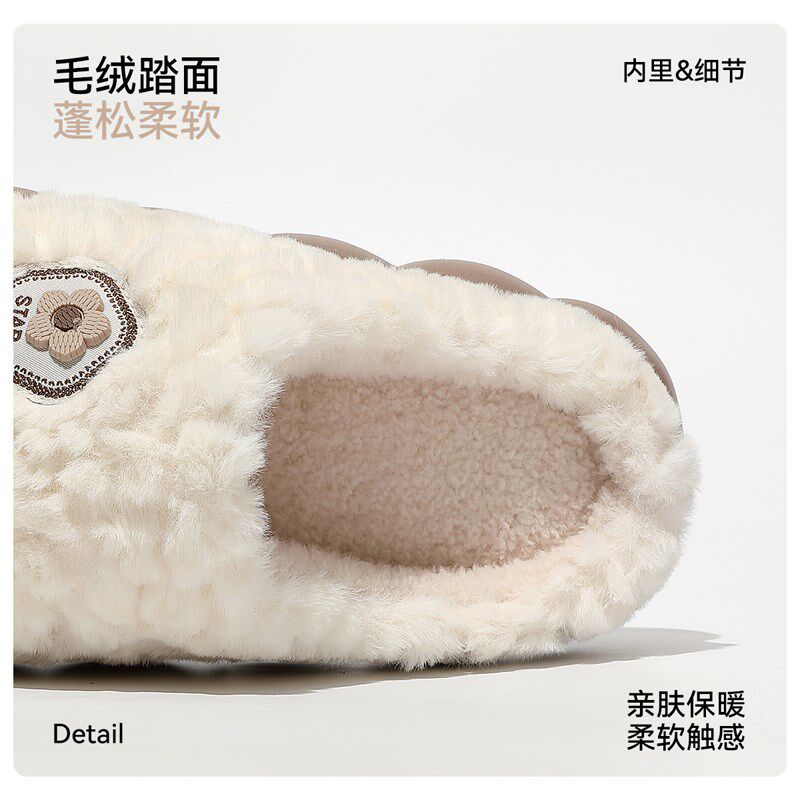 秋冬加厚棉拖鞋情侣款男女保暖防滑厚底加绒外穿防寒毛绒