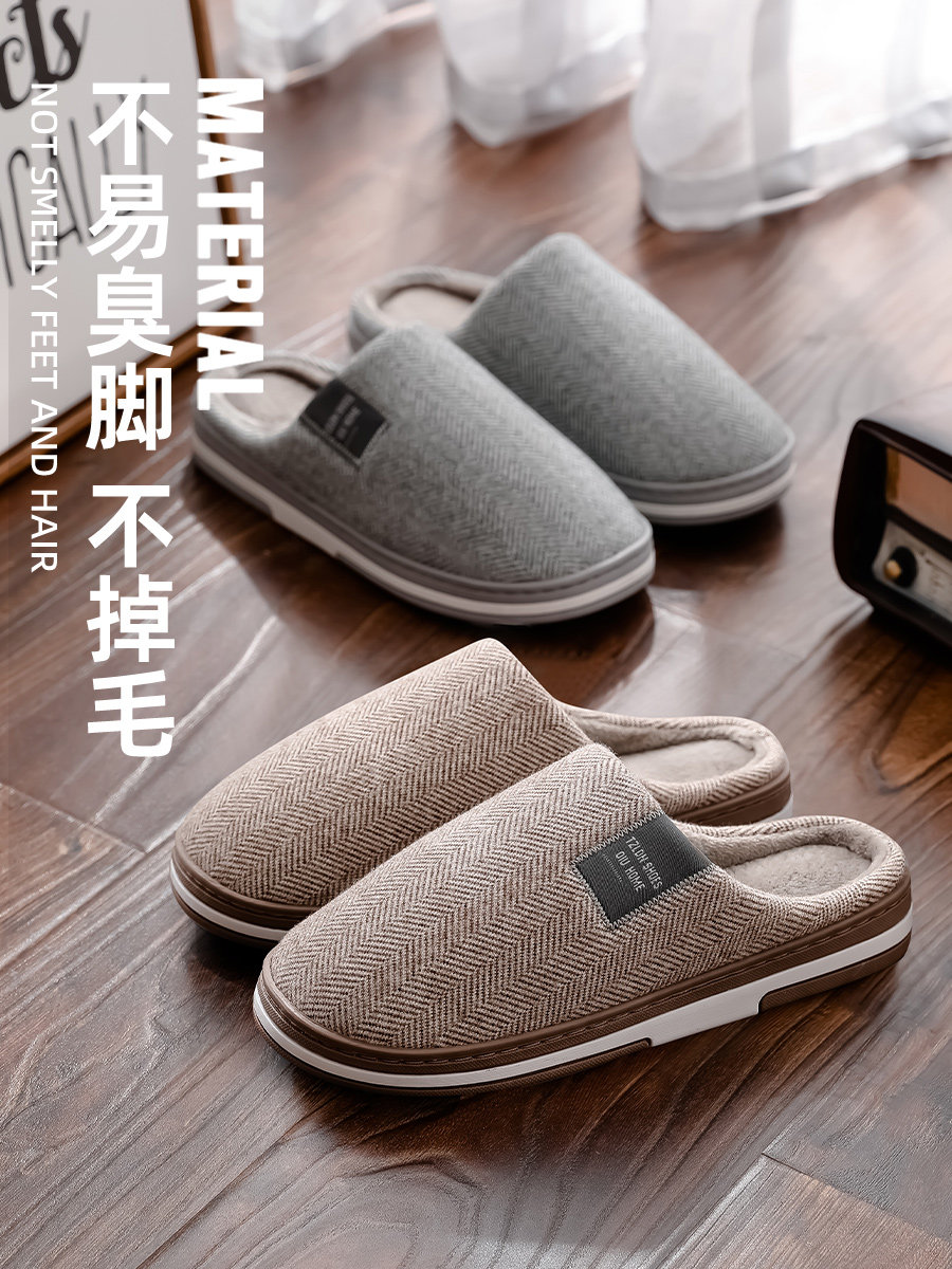 Heattech 2023新款中老年冬季男士室内羊毛衬里秋冬防滑棉拖鞋