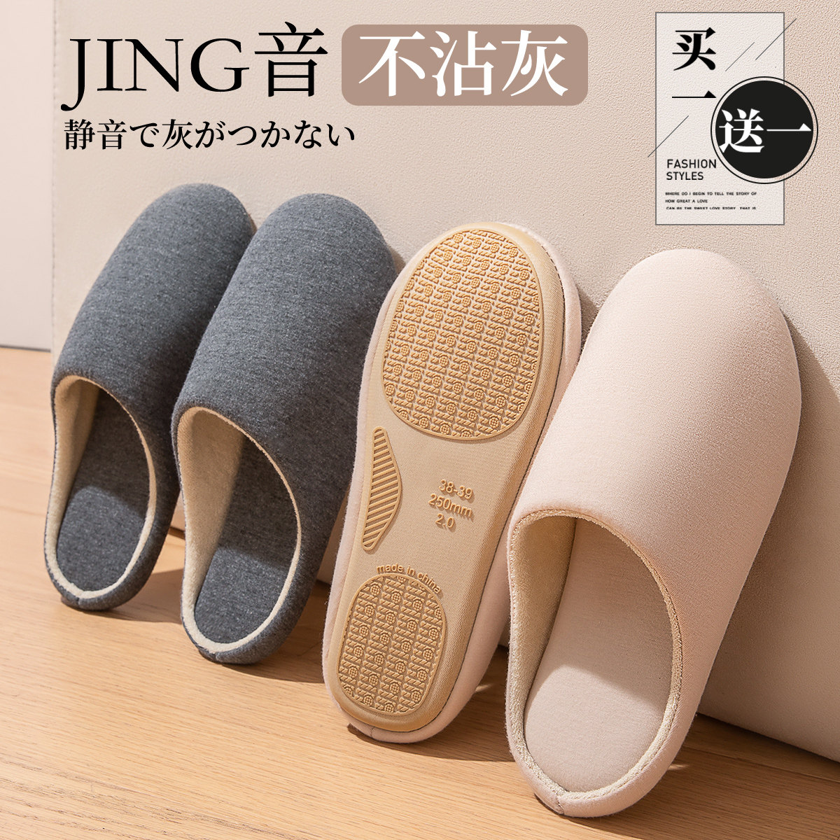 买1送1静音棉拖鞋女2024新款室内家居防滑无声情侣V地板拖鞋秋冬