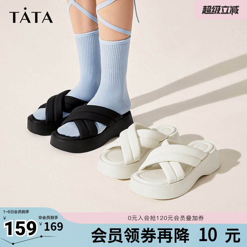 Tata他她云朵拖鞋奥莱厚底一字女外穿松糕底凉拖秋季秋新WBS01BT4