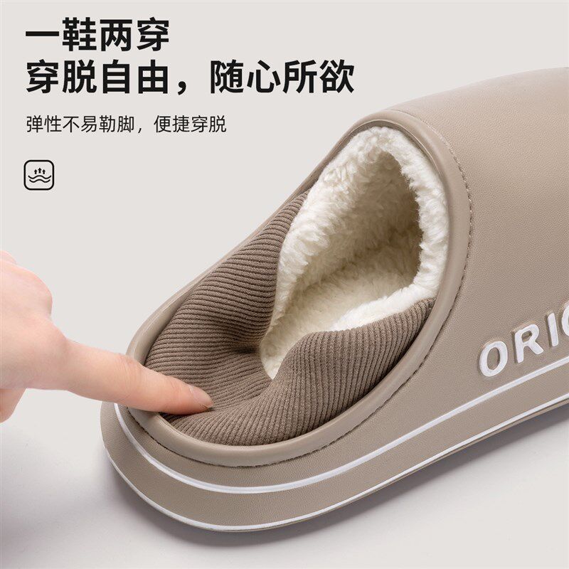 棉拖鞋女外穿防水包跟保暖情侣厚底防滑家居家用室内秋冬季月子鞋