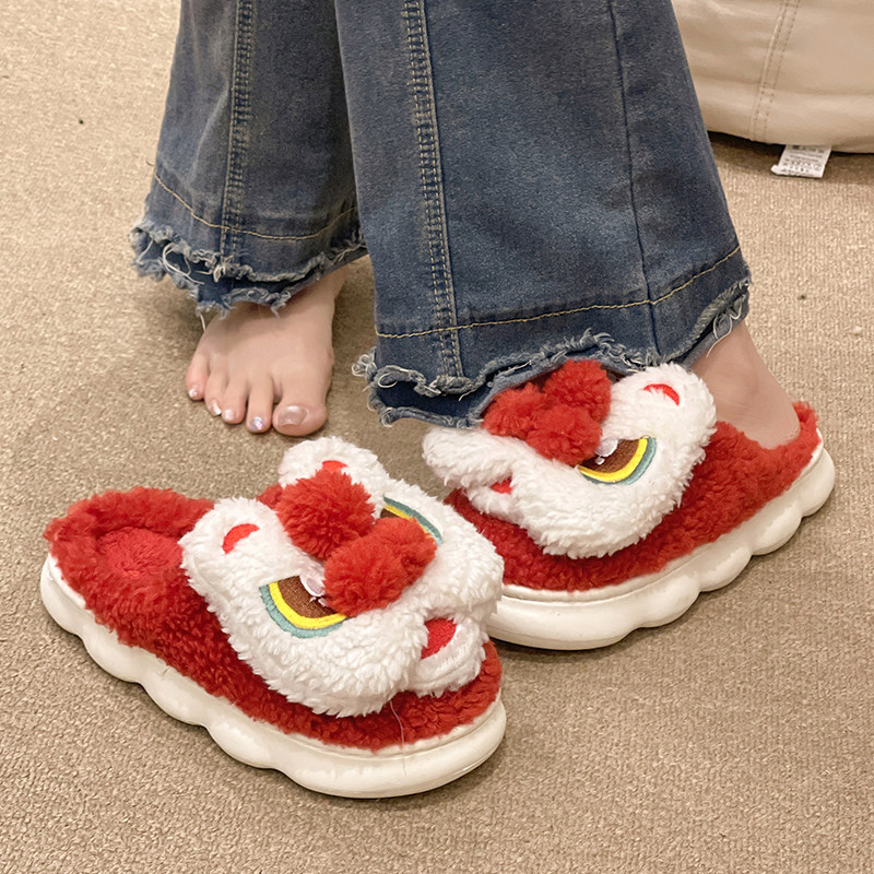 毛绒拖鞋外穿女冬季2025新款室内家居保暖厚底防滑可爱醒狮棉拖鞋