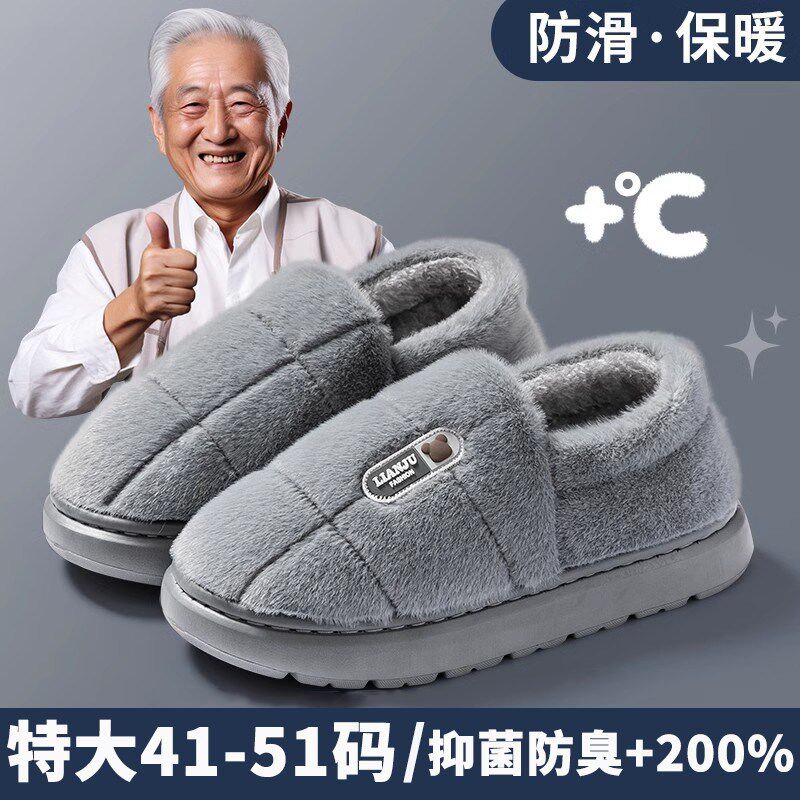 男士特大码防滑棉拖鞋老年人厚底室内家居K保暖加肥加大号冬季棉