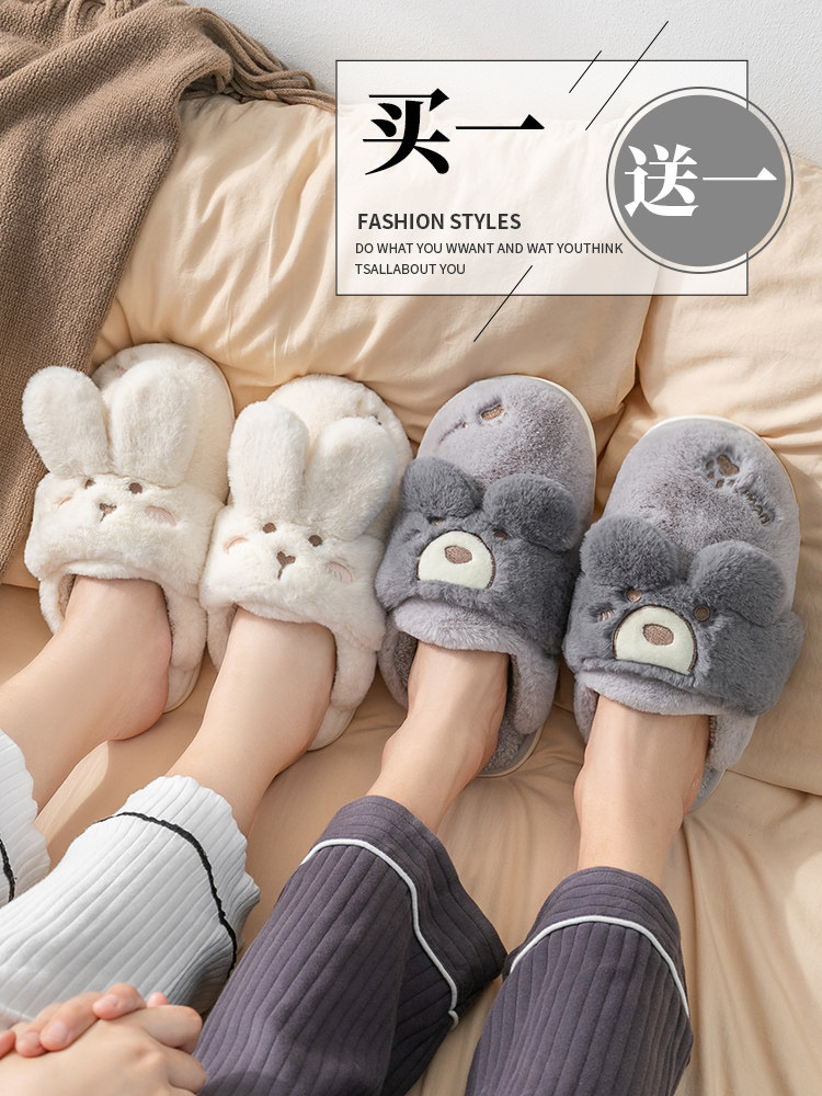 买一送一棉拖鞋女士秋冬季室内2025新款情侣家居一对居家毛拖鞋男