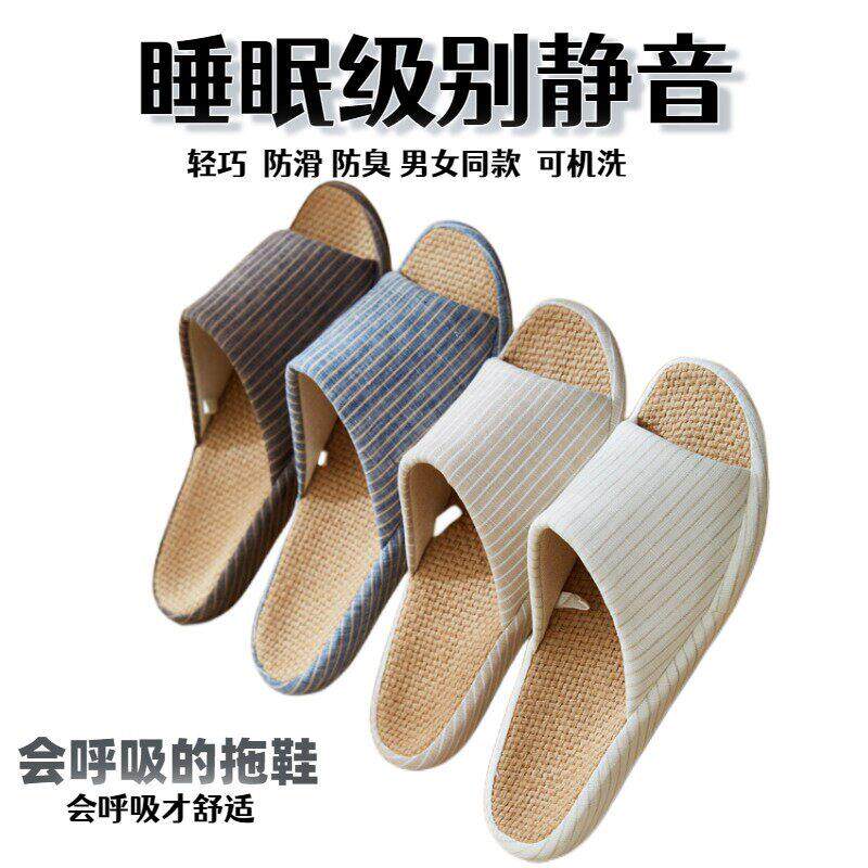 春夏拖鞋露趾亚麻可机洗室内防滑静音实木地板瓷砖男女款轻骑凉鞋