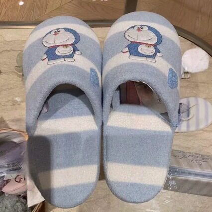 可爱家居静音拖鞋叮当猫女士家居拖鞋防滑包头拖鞋保暖