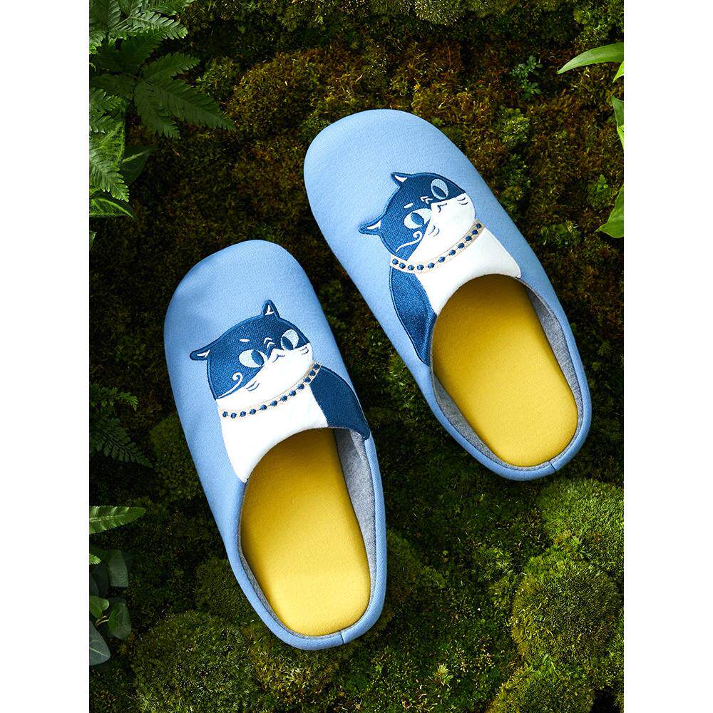 春夏国潮情侣居家地板机洗静音猫咪如茉新中式绣花拖鞋联珠喵