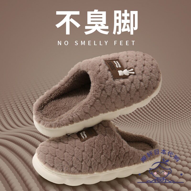 新品日本防臭棉拖鞋男士冬季室内居家用防滑保暖加U绒毛拖鞋冬天