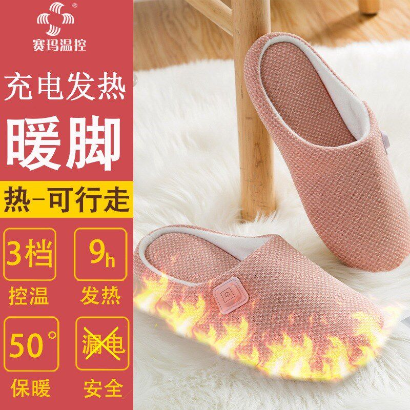 冬新款暖脚加热拖鞋日式家居充电发热保暖鞋防滑棉拖鞋电暖鞋