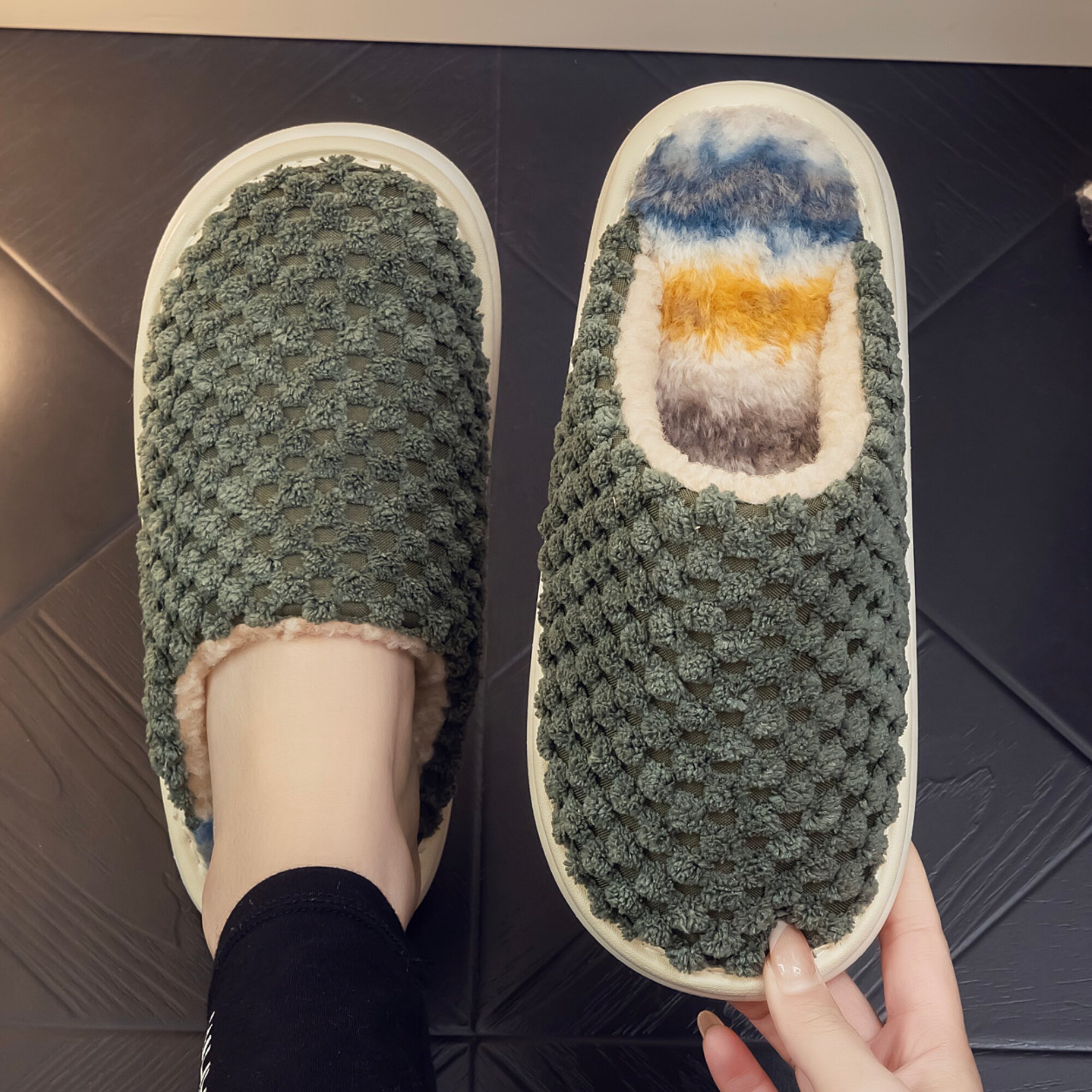 懒人毛毛鞋女冬季情侣加绒厚底保暖防滑居家男女棉拖鞋室内新款