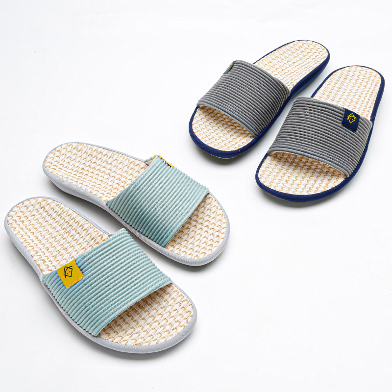远港四季亚麻条纹拖鞋棉麻女夏室内居家防滑情侣男家用布麻拖