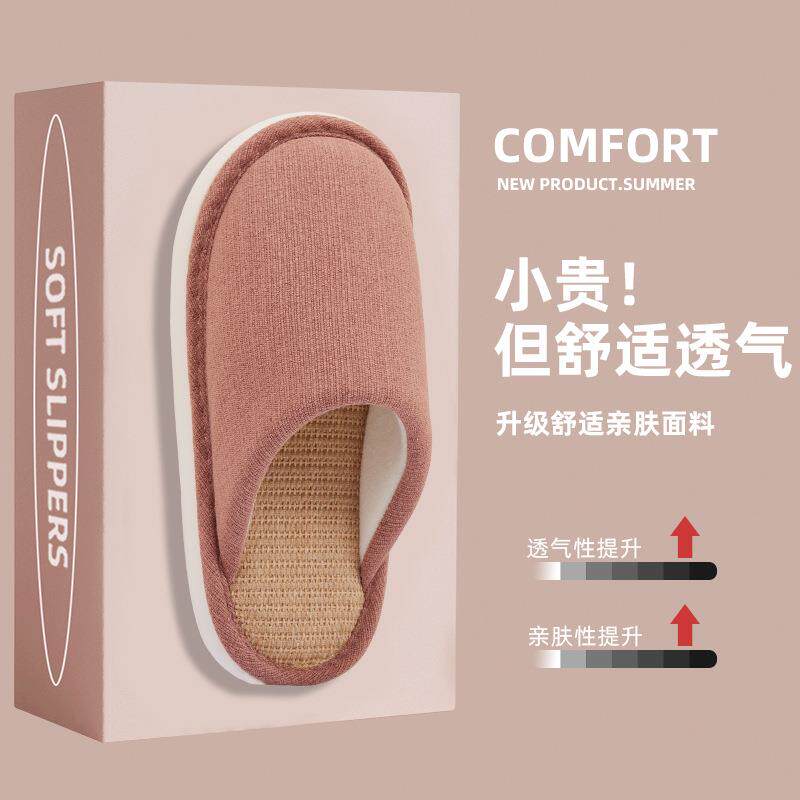 棉麻拖鞋女夏季布艺开口室内防滑木地板静音中老年情侣居家软底男