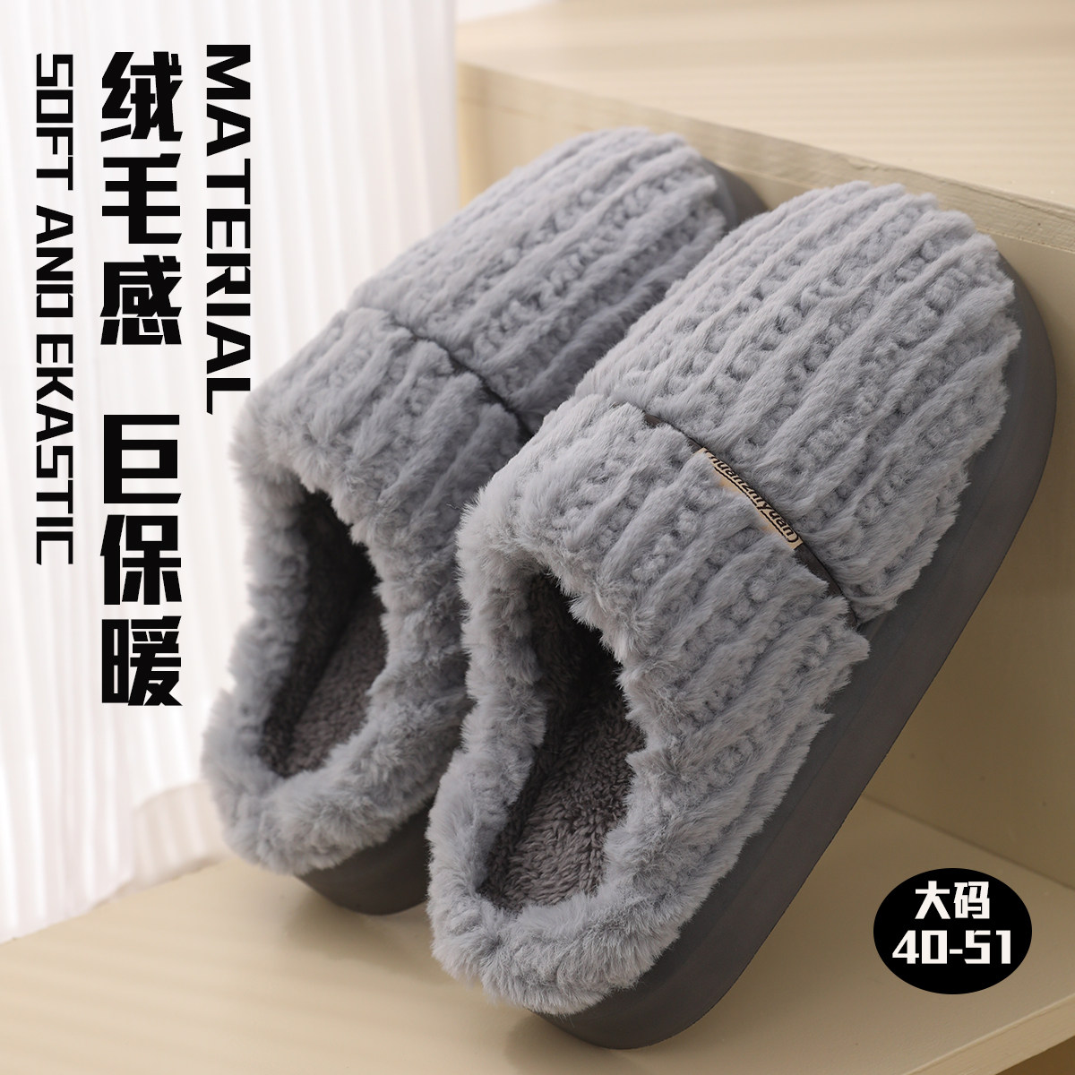 超大码棉拖鞋男士冬季室内居家厚底防H滑保暖家用毛拖鞋男款秋冬