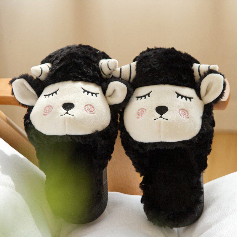 冬季棉拖鞋女加绒加厚底居家室内卡通羊防滑家用保暖可爱儿童情侣