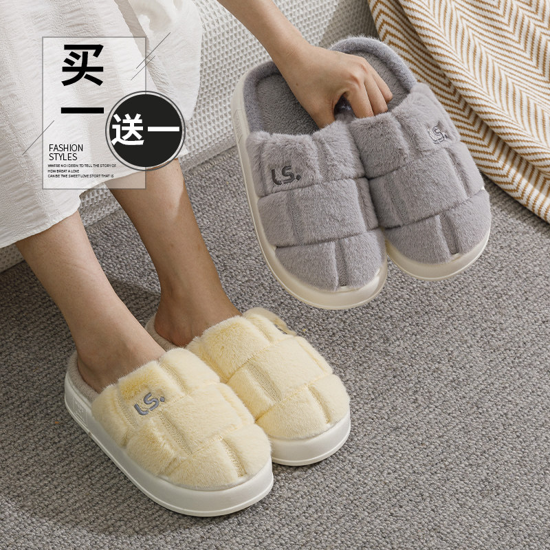 两双装棉拖鞋女冬季外穿厚底保暖绒毛情侣一对室内家居防滑拖鞋男