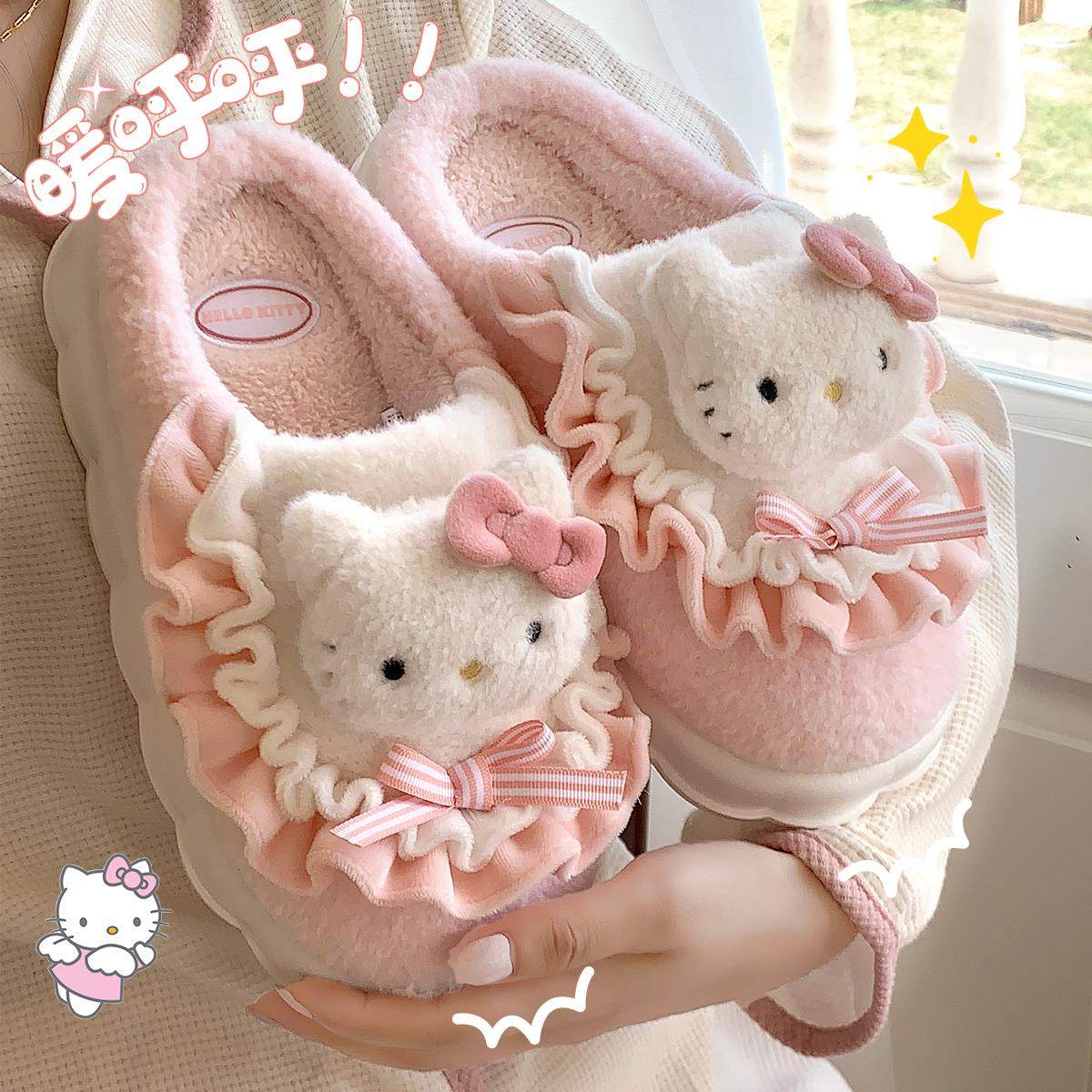 凯蒂猫棉拖鞋女款冬季2025新款室内家居厚底可爱毛毛棉鞋女士冬天