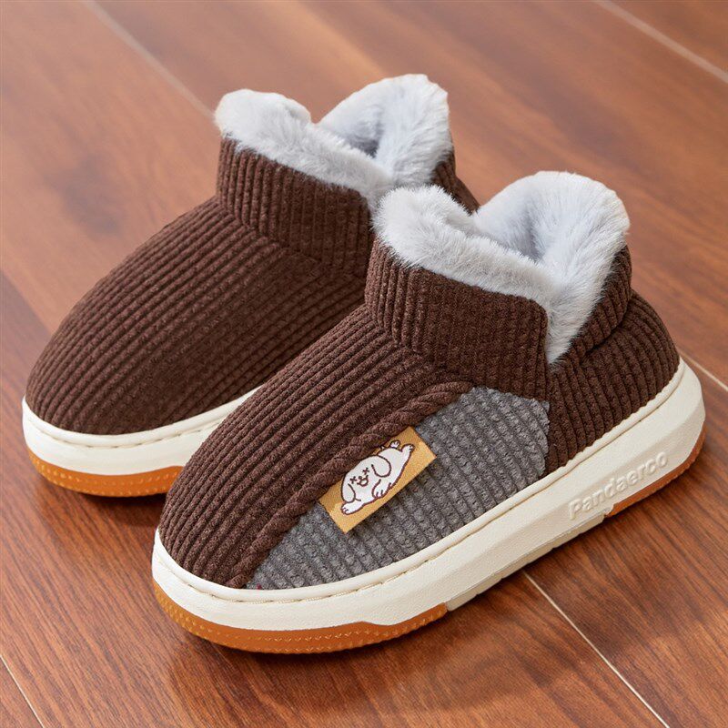 可爱熊猫儿童拖鞋冬季新款男孩厚底防滑女宝宝室内保暖亲子毛拖鞋