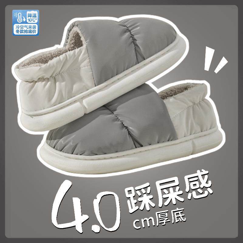 防水棉拖鞋女款秋冬季保暖室内家居防滑厚底加绒防寒包头棉鞋女士