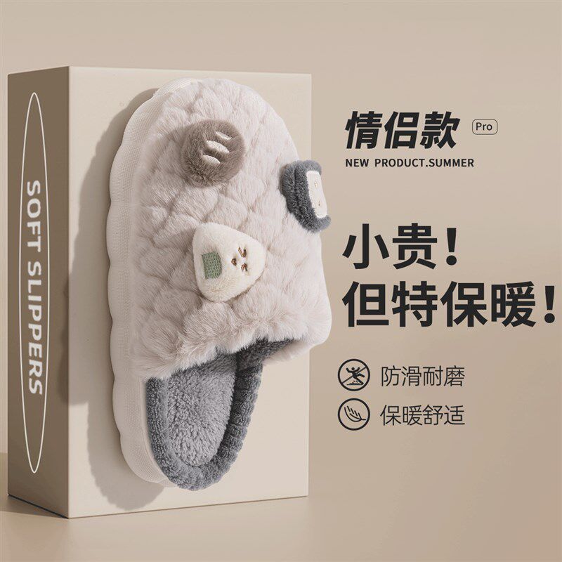 萌萌水豚棉拖鞋女富贵金元宝家居型可爱毛绒滑厚底棉拖