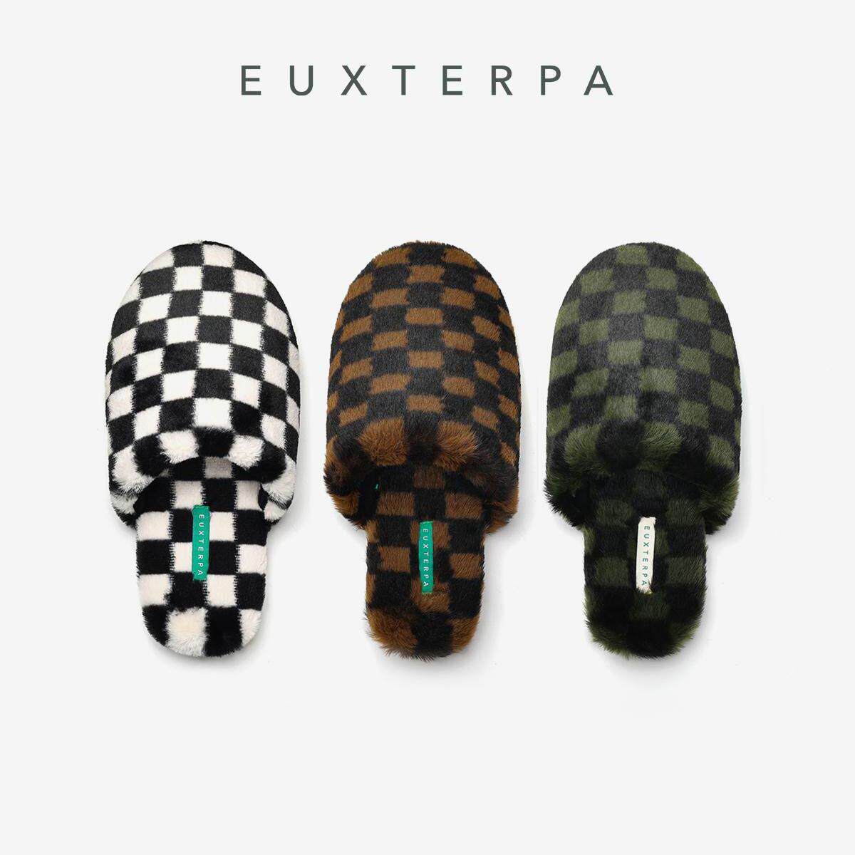 【特惠】春秋填充暖软底棋盘格防滑无声室内男女家用拖鞋