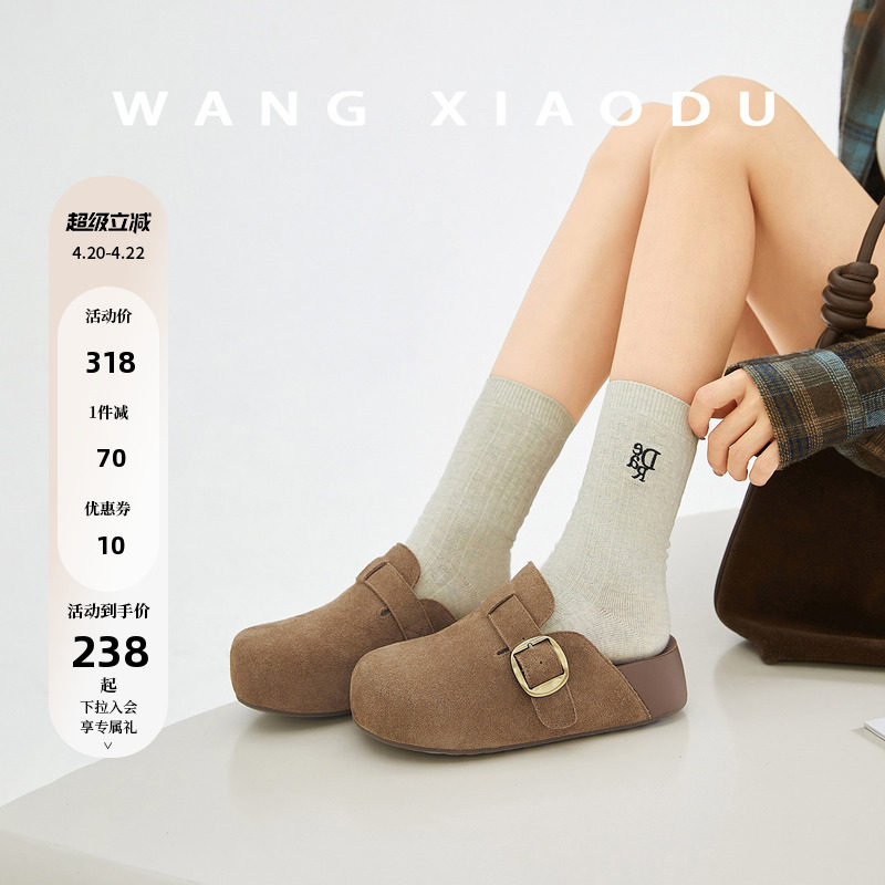 【王小毒】沙发勃肯○5cm内增高包头拖鞋女外穿绒面复古弹力单鞋