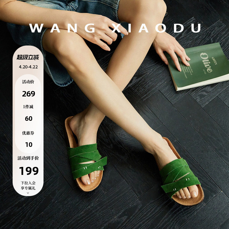 【王小毒】彩虹织夏●2.5cm牛反绒一字凉拖鞋女外穿交叉带勃肯鞋