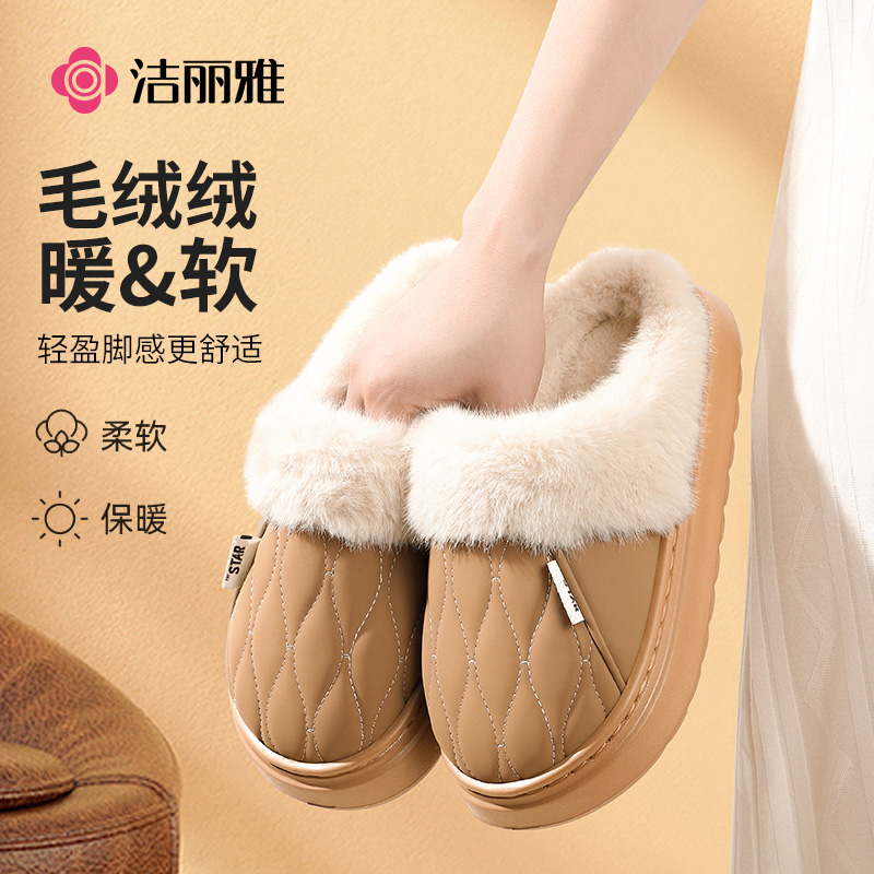 洁丽雅棉拖鞋女2025秋冬新款室内厚底情侣家用保暖防滑毛绒棉拖男