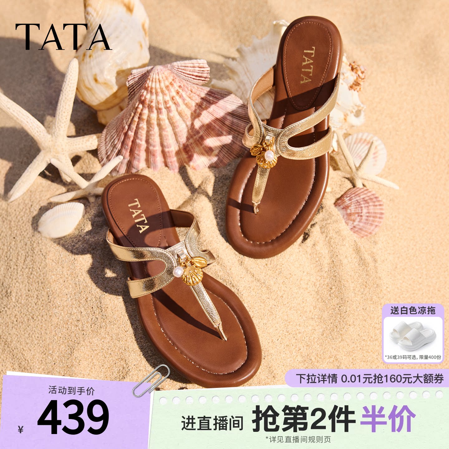 TATA他她南法假日平底沙滩拖鞋外穿夹趾人字拖鞋凉鞋夏款7H204BT6
