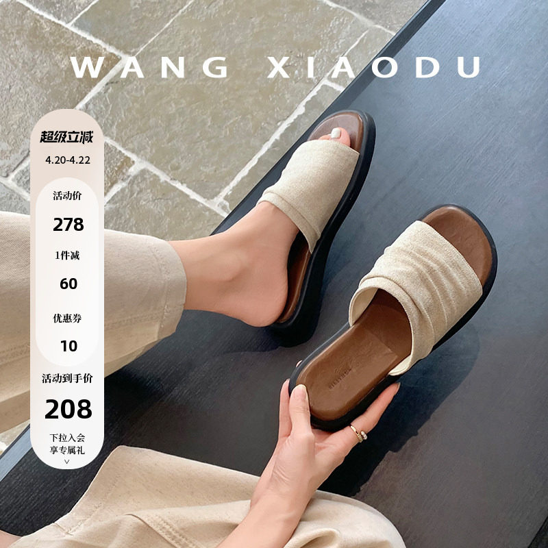 【王小毒】棕榈假日●亚麻布褶皱一字拖鞋女夏季度假沙滩外穿拖鞋