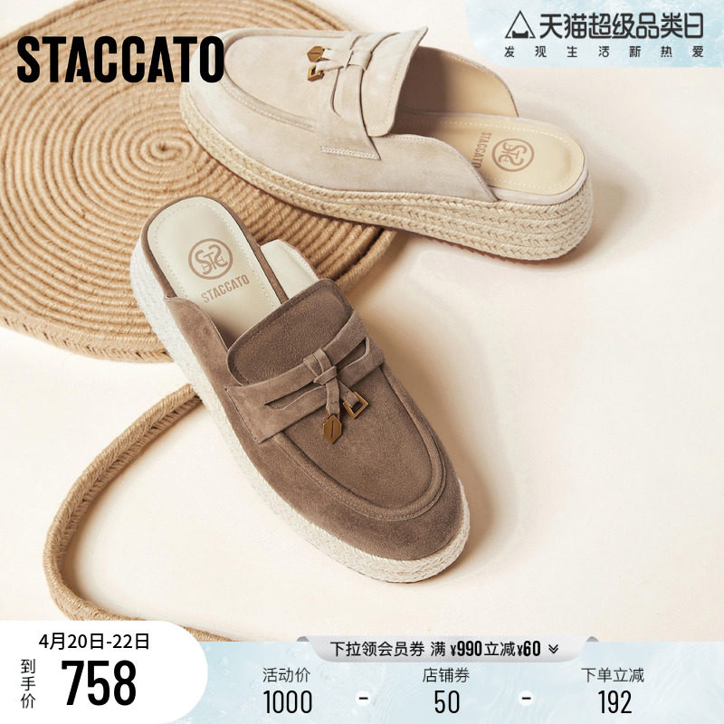 思加图新款复古包头拖厚底增高半拖凉拖鞋渔夫鞋女鞋H2266CH5